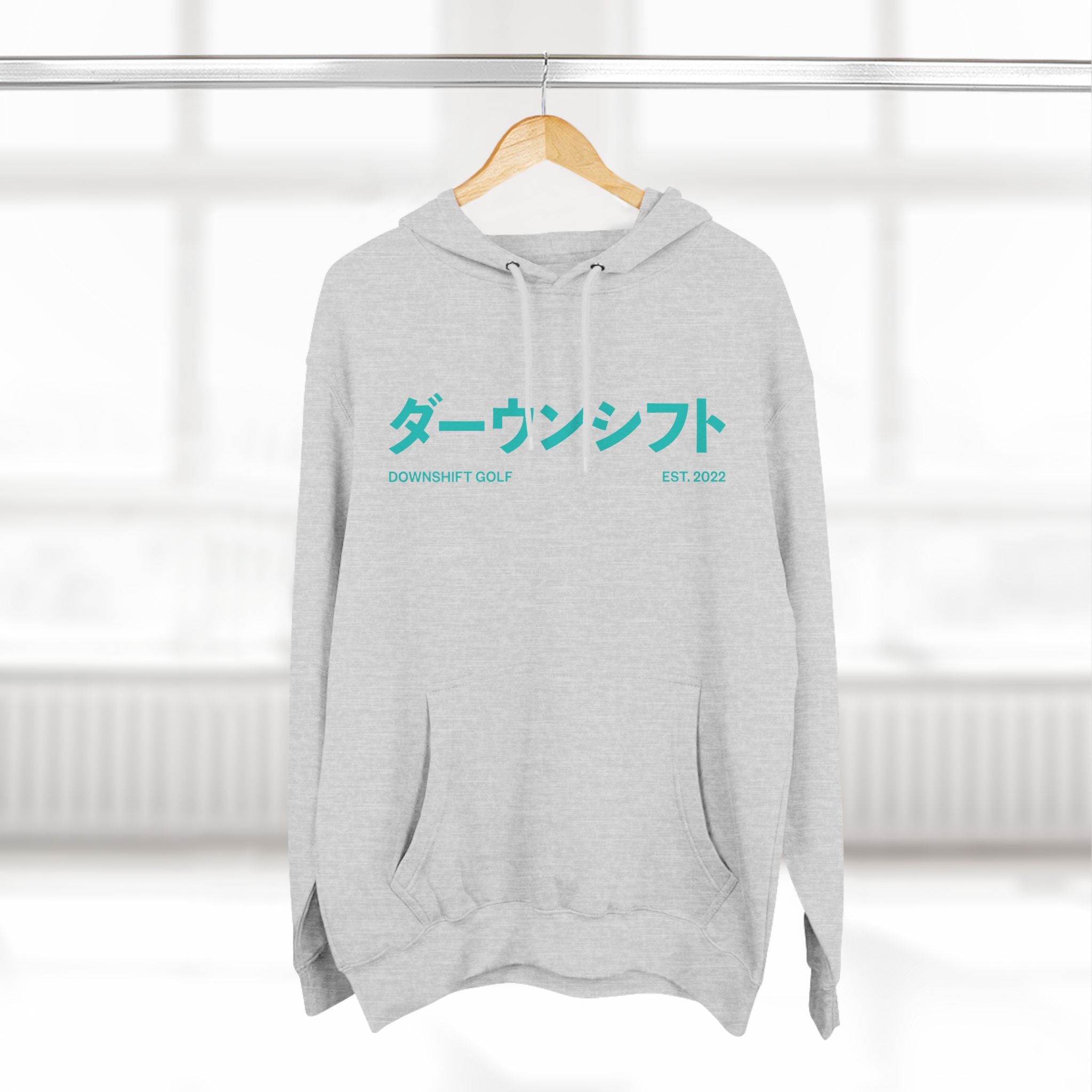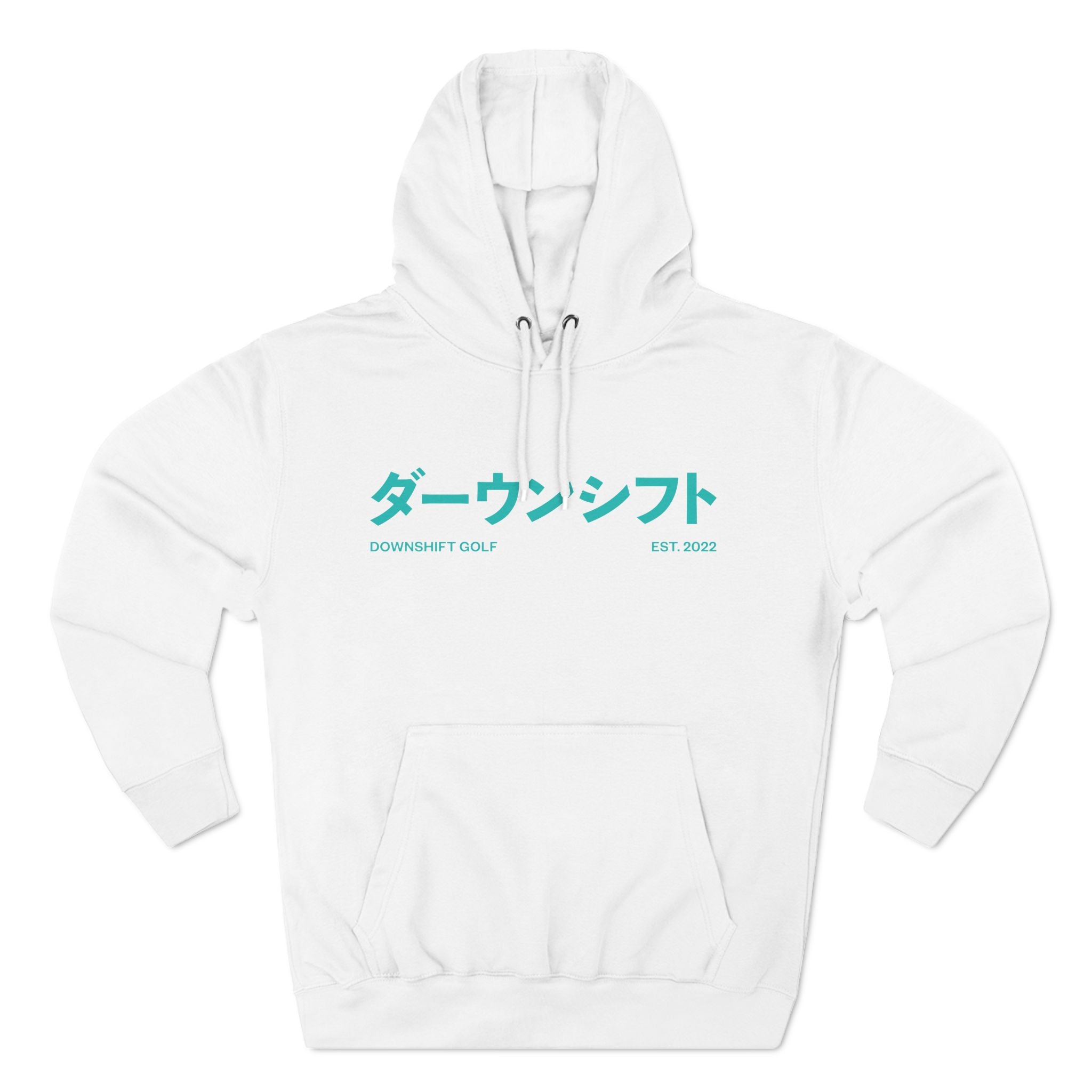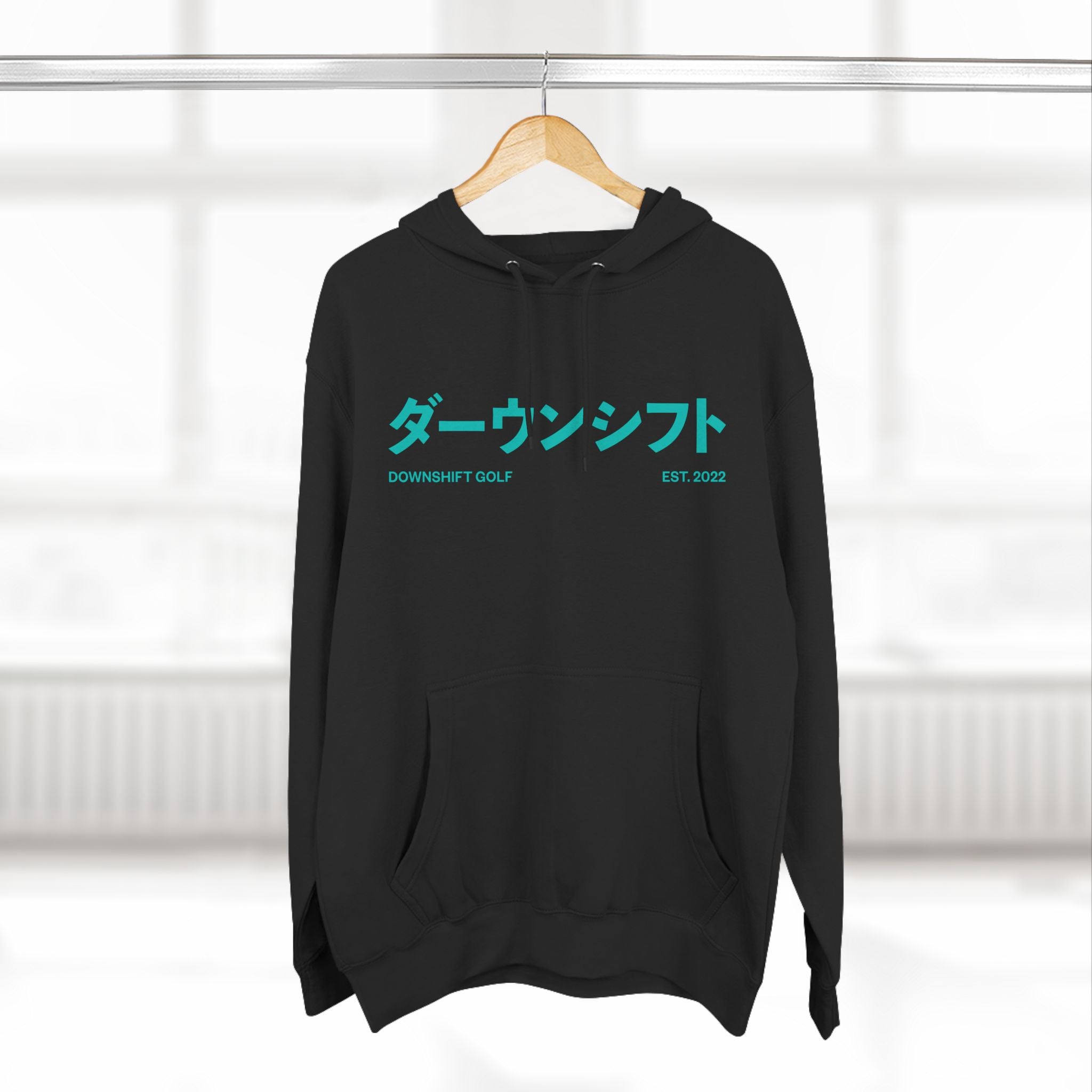 Hyper Teal Japanese Downshift Logo Three-Panel Hoodie