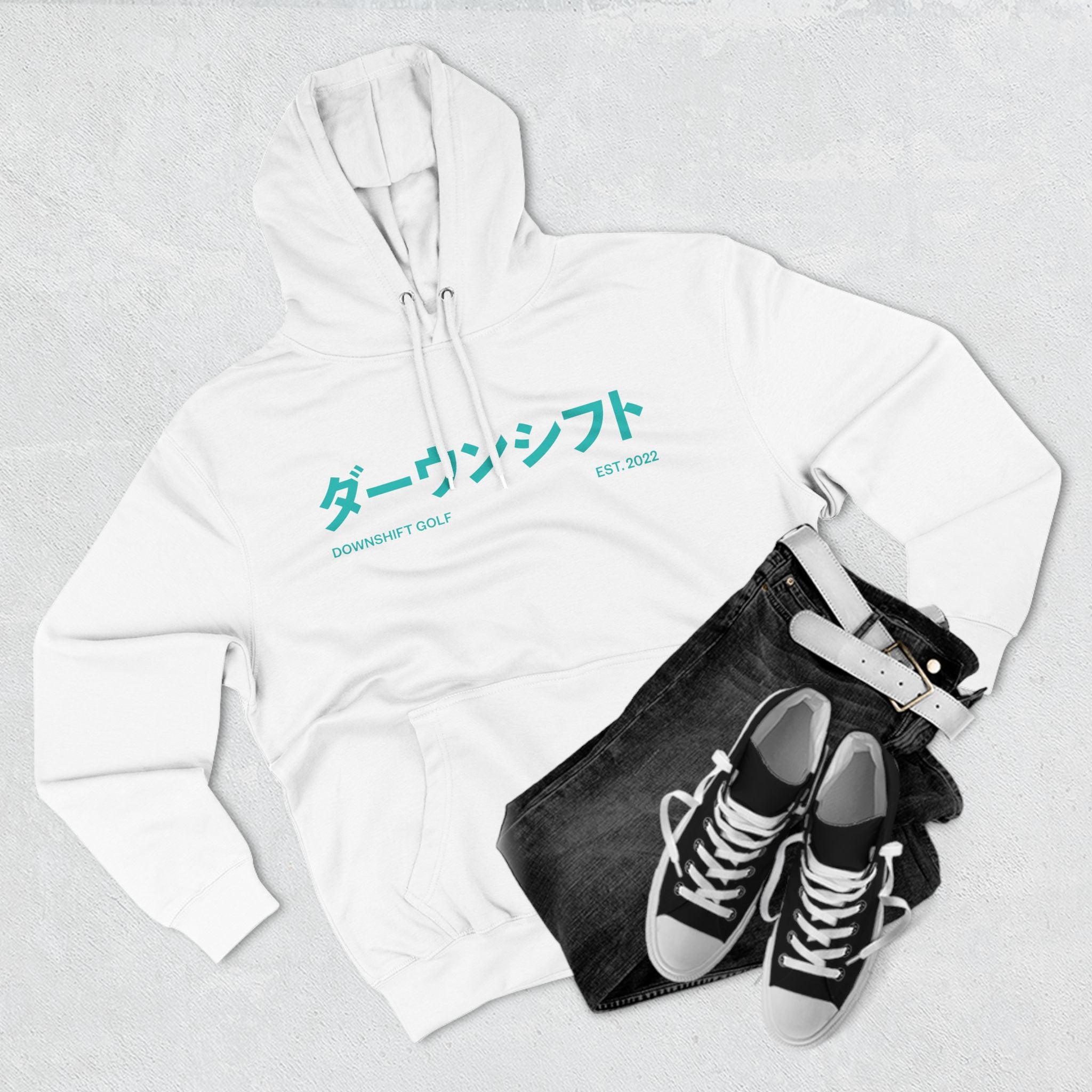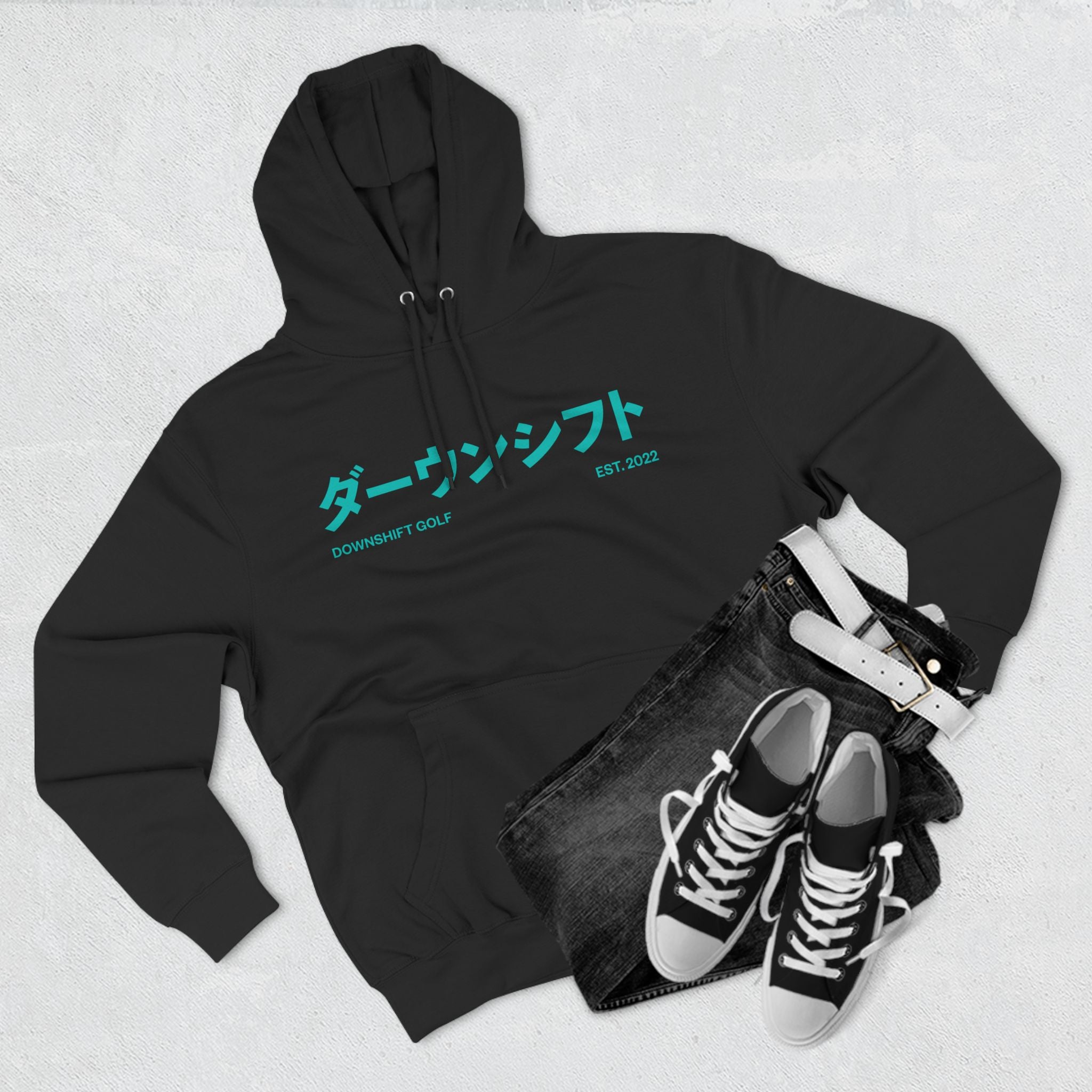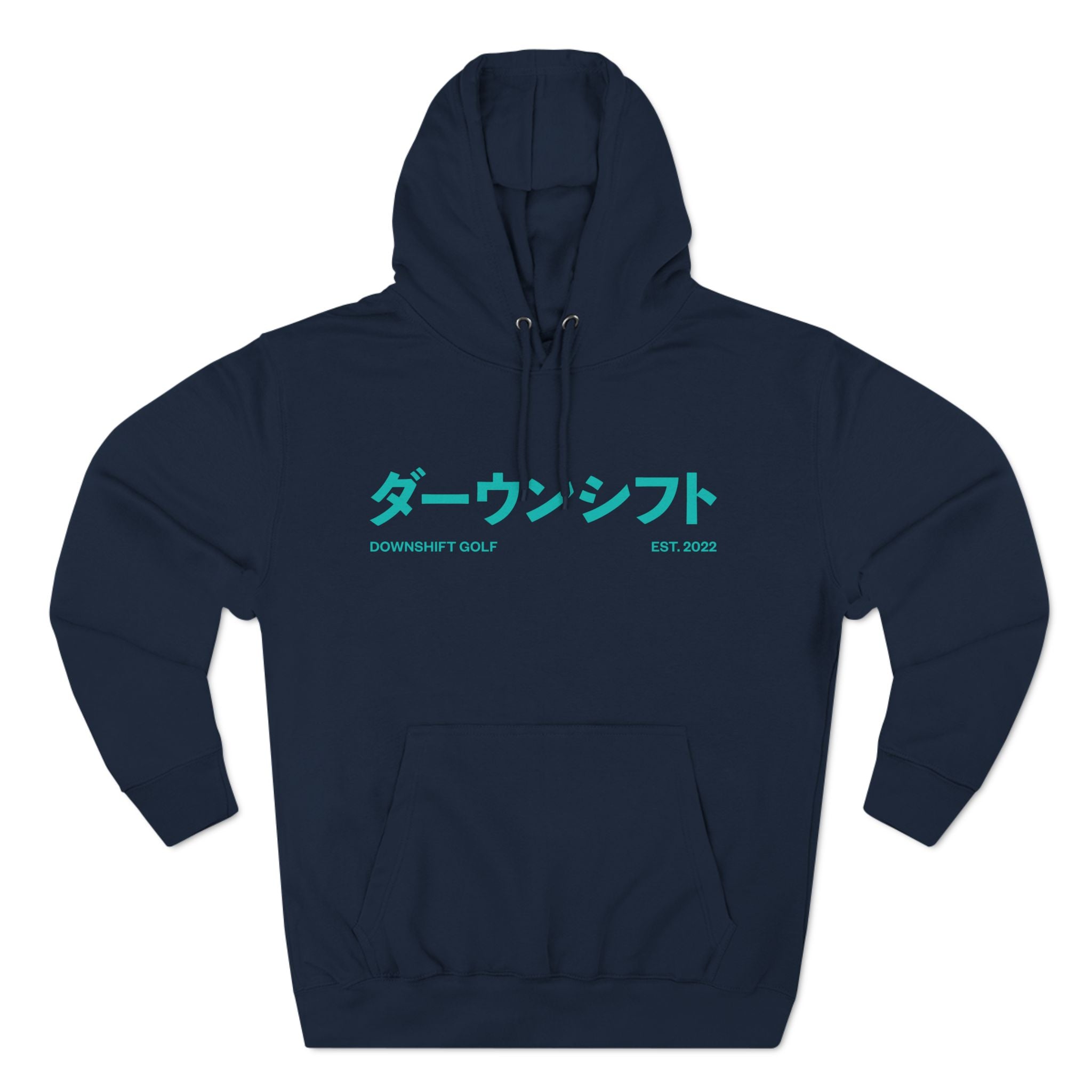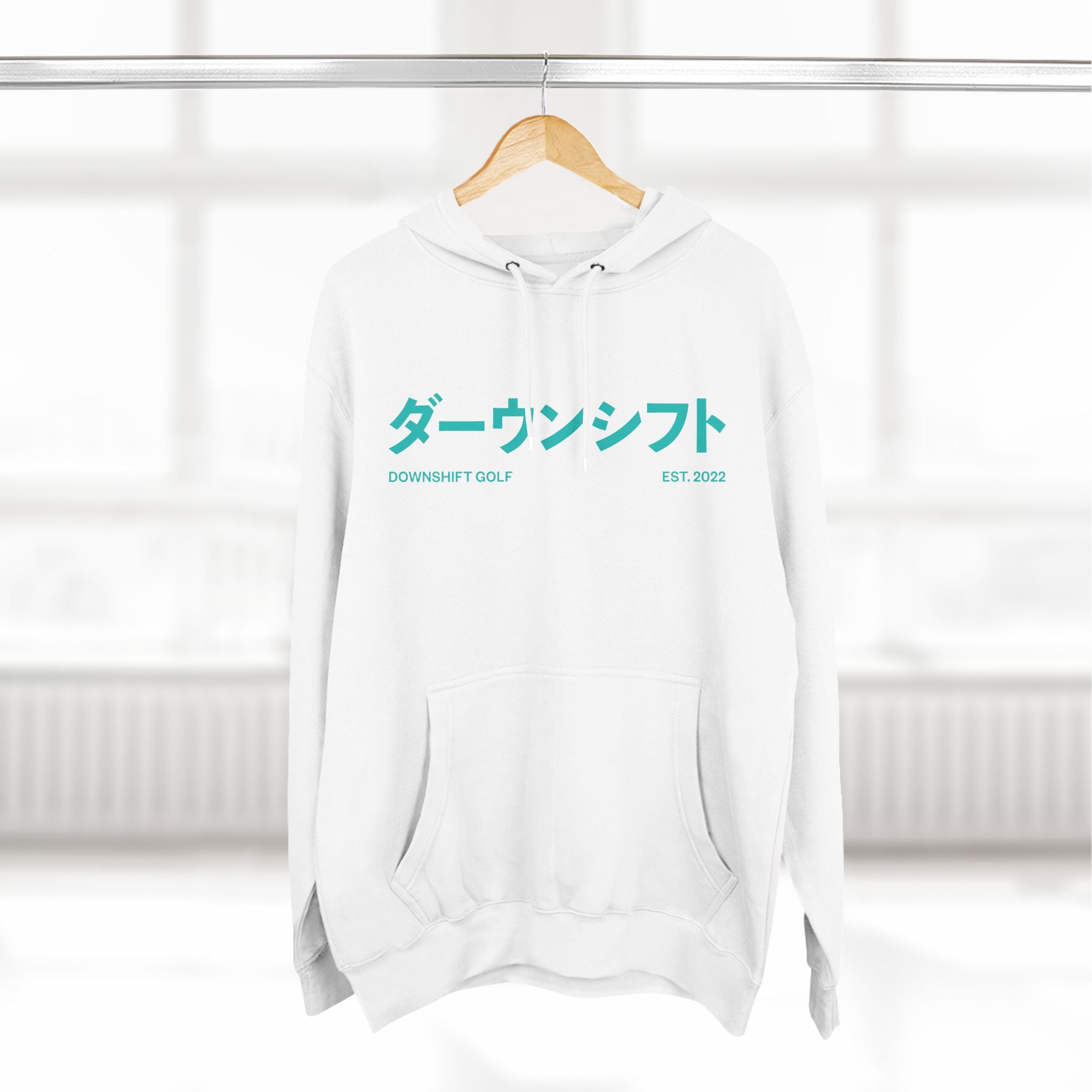 Hyper Teal Japanese Downshift Logo Three-Panel Hoodie
