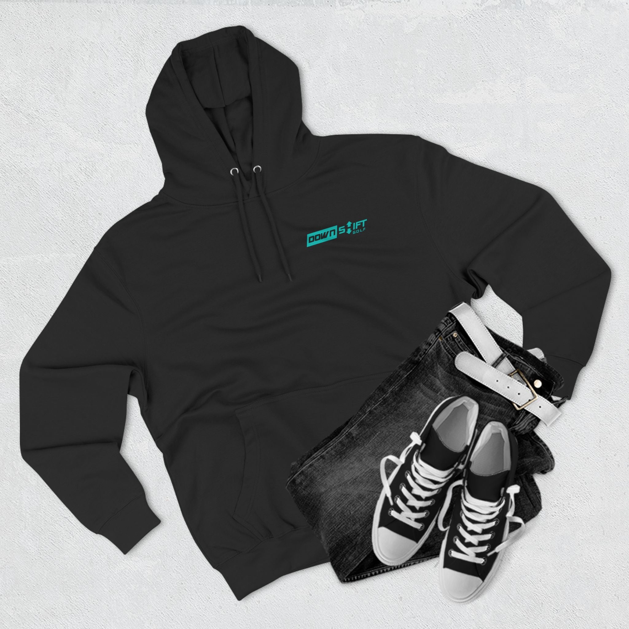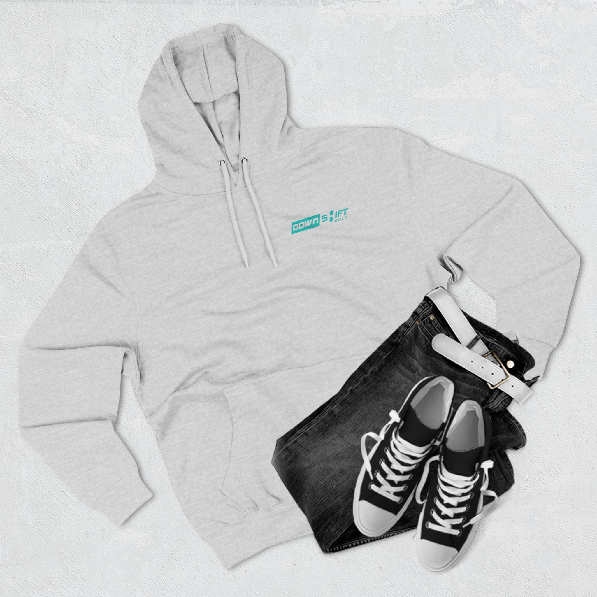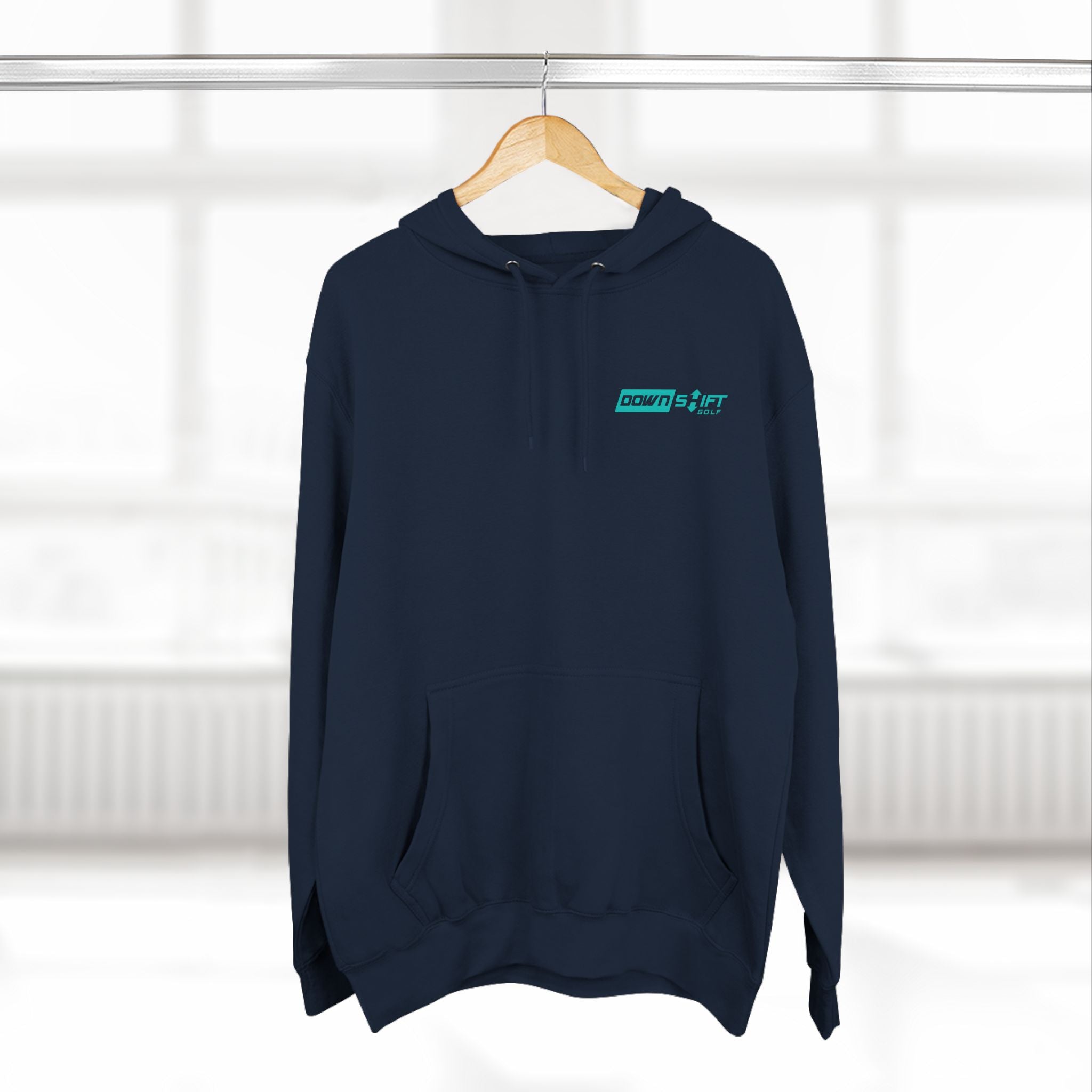 Hyper Teal Small Downshift Logo Three-Panel Hoodie